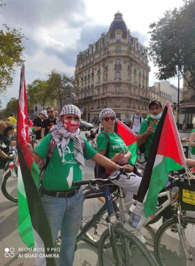 Petite balade à vélo et déambulation ce samedi à Paris, pour afficher la Palestine, alors que la France autorise une équipe représentant l’apartheid israélien.