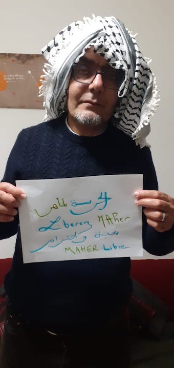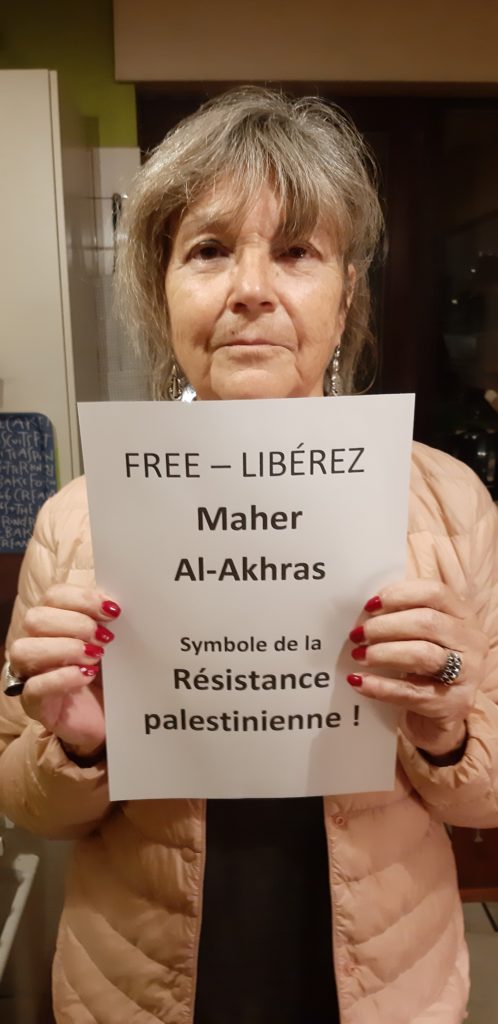 Vos photos parviennent en Palestine et encouragent la résistance de Maher, de tous les prisonniers palestiniens, et de tous les militant(e)s qui font chaque jour l’objet d’arrestations, d’interrogatoires interminables, et de tortures avant d’être incarcérés par un occupant d’autant plus brutal qu’il connait la détermination des Palestiniens et Palestiniennes de tous âges à rester sur leur terre.