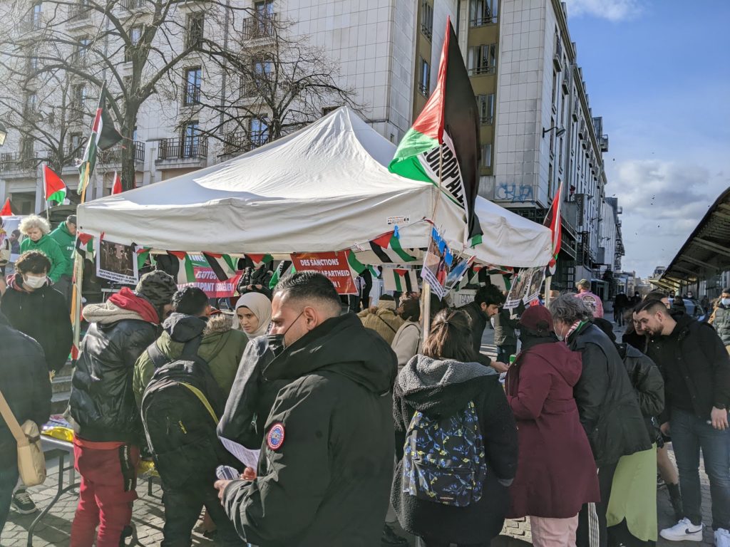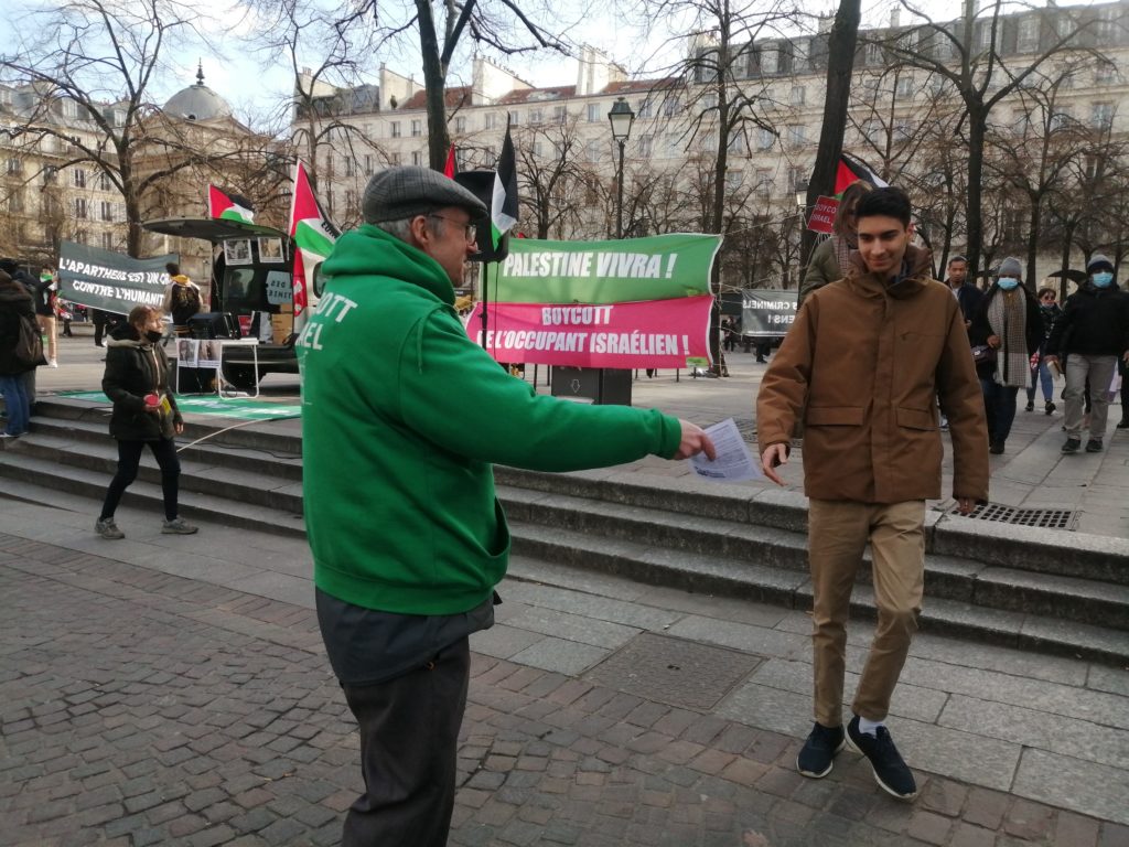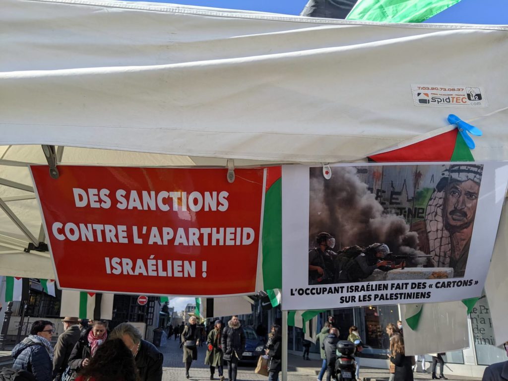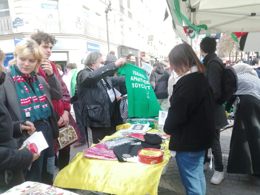 Un rassemblement très réussi, qui a permis de nombreux échanges avec les passants ce samedi à la Fontaine des Innocents. Plus de 1200 tracts reprenant le rapport d’Amnesty International sur l’apartheid israélien ont été distribués dans l’après-midi. Notre stand a permis de donner un maximum d’informations sur la situation en Palestine, le boycott d’Israël et des entreprises qui participent à la colonisation israélienne comme HP et PUMA.