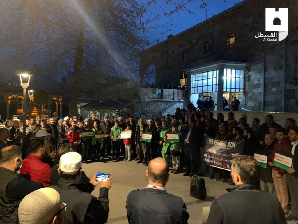 Et des Turcs ont organisé une veillée dans la ville de Konya après avoir effectué la prière du Fajr pour protester contre la répression israélienne.