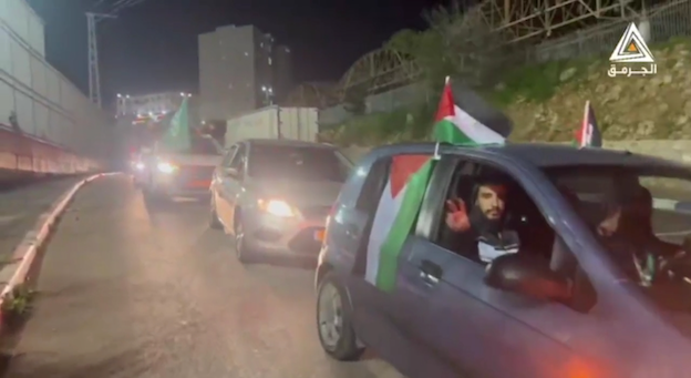 Et ce jeudi soir à Umm al-Fahm, dans le district d’Haïfa, manifestation monstre sur la route, avec drapeaux palestiniens… interdits !