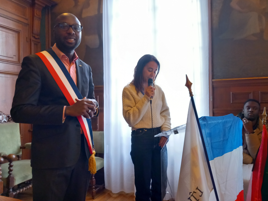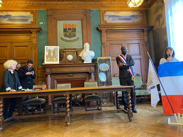 Foule des grands jours, ce vendredi soir à l’Ile Saint-Denis (93), pour célébrer l’inauguration des panneaux désormais placés aux entrées de la ville pour indiquer le jumelage entre les deux villes.