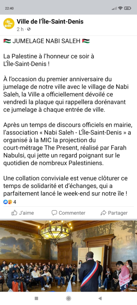 La mairie de l’Ile Saint-Denis fête son jumelage avec le village de Nabi Saleh en Palestine (Photos et vidéo)