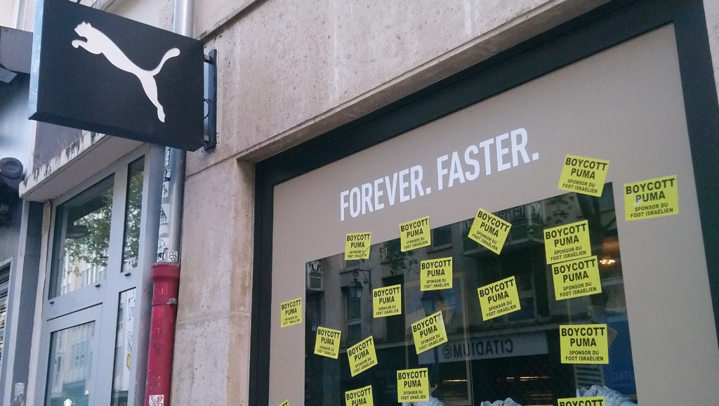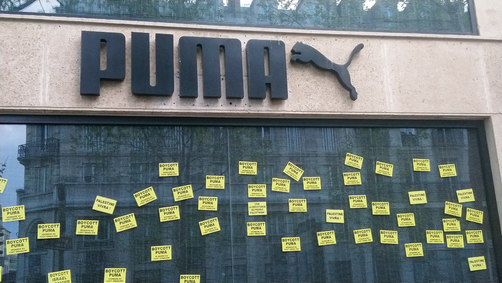 La campagne de boycott de PUMA est internationale, car PUMA a choisi de sponsoriser l’équipe nationale de football d’Israël, qui devrait être éliminée de toutes les compétitions, étant donné