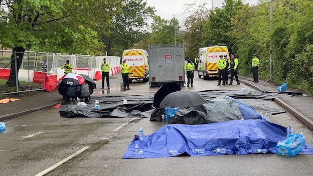 Les militants de Palestine Action, encouragés par la population de Leicester poursuivent l’occupation devant l’usine d’armement israélienne d’Elbit pour exiger sa fermeture.
