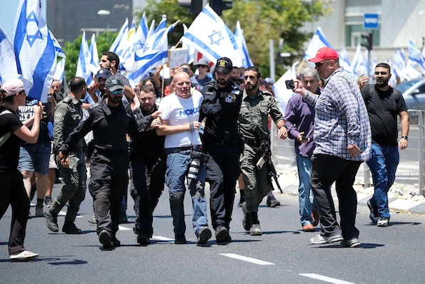 Des policiers israéliens ont frappé et arrêté mardi le photojournaliste du quotidien israélien Haaretz Rami Shllush, puis celui de Ynet News, Gil Nehoshtan alors qu’ils couvraient les manifestations à Haïfa contre le vote de la réforme judiciaire.