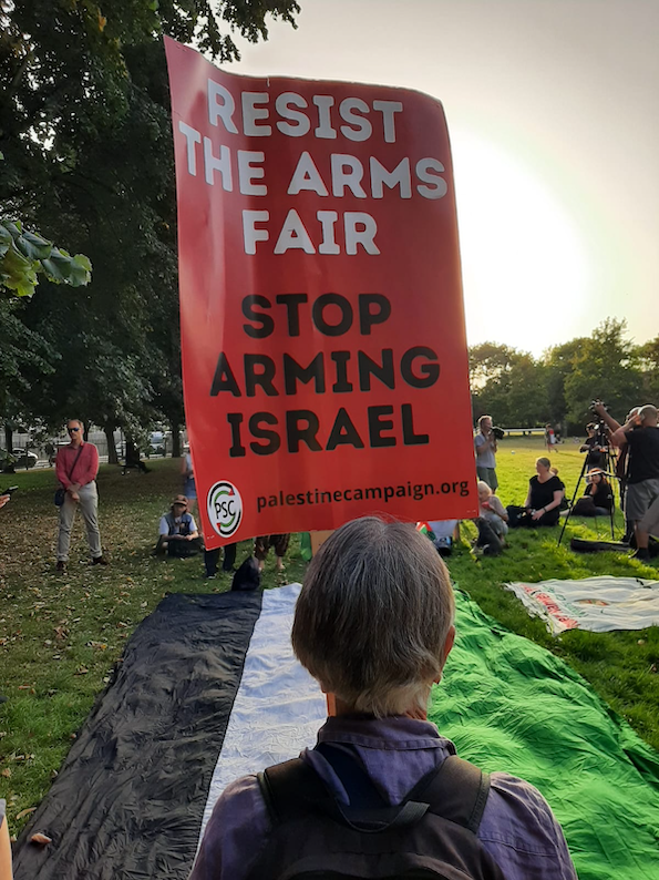 En Angleterre également des défenseurs des droits des Palestiniens sont venus perturber la foire aux armements mardi soir à Londres.
