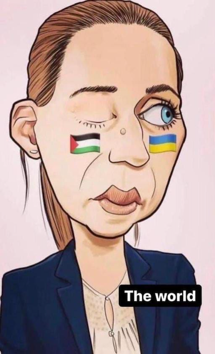 Quand l’Ukraine est attaquée par la Russie, ils soutiennent l’occupé contre l’occupant. Mais en Israël/Palestine, c’est l’inverse, ils soutiennent l’occupant contre l’occupé, en violation cynique du droit international.