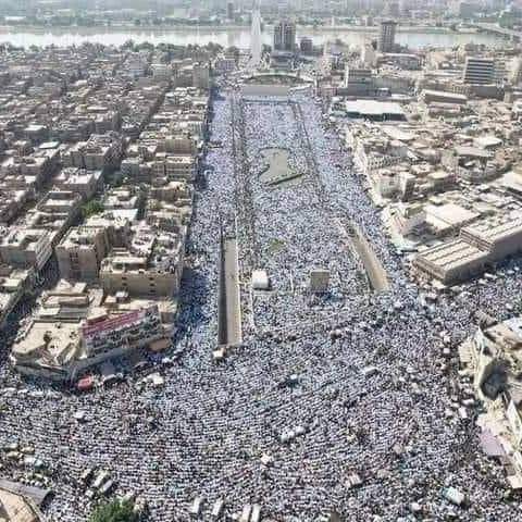 Des dizaines de milliers d’Irakiens se sont rassemblé vendredi dans le centre-ville de Bagdad, en Irak, pour soutenir le peuple palestinien et pour protester contre l’agression israélienne contre Gaza.