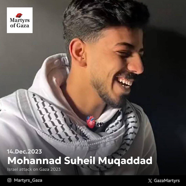 Mohannad, un autre jeune Palestinien, styliste très doué, doté d’une très belle voix qui faisait les délices de nombreux Palestiniens a été tué et tous ses beaux rêves avec lui :