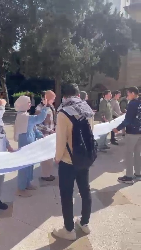 Rassemblement à l’Université américaine de Beyrouth en soutien à Gaza et à la Palestine, avec le déroulé de tous les noms des martyrs de Gaza