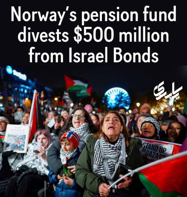 Le Fonds de pension norvégien, l’un des plus grands fonds de pension au monde, a annoncé avoir cédé la totalité de ses avoirs en obligations « israéliennes » (d’une valeur d’un demi-milliard de dollars).