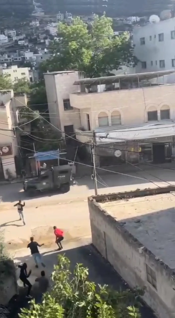 Des jeunes affrontent les forces d’occupation israéliennes dans la ville de Beit Farouk à l’est de Naplouse, en Cisjordanie.