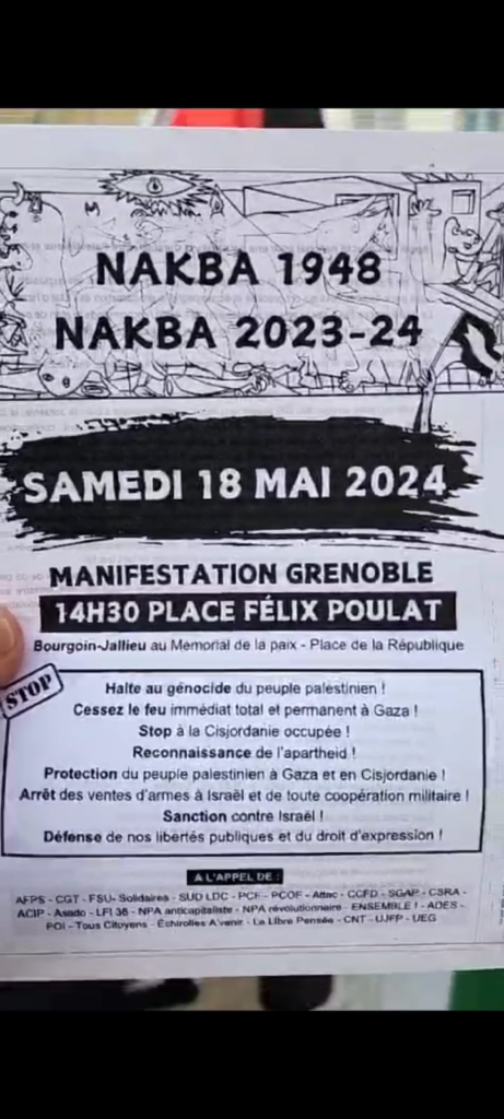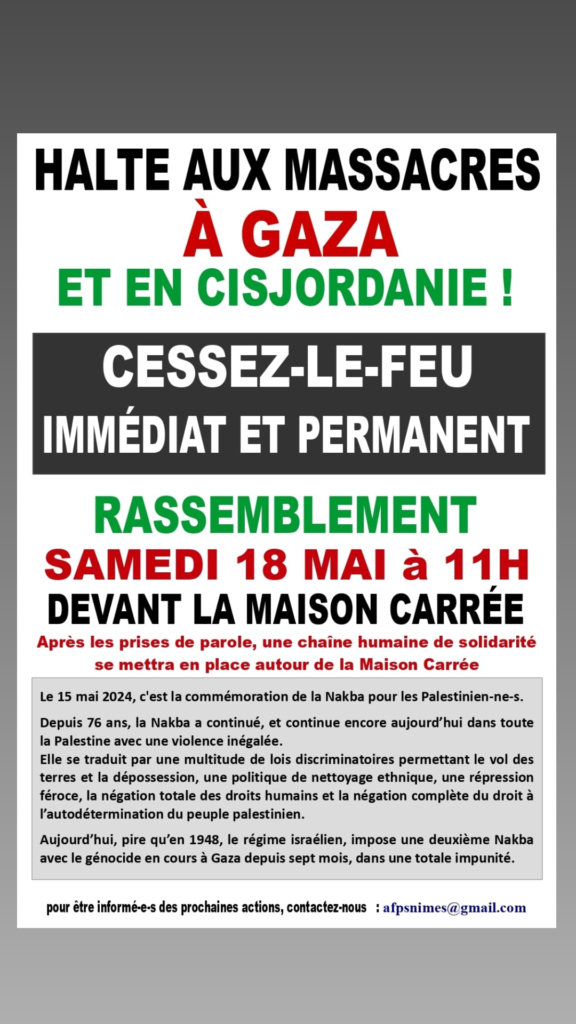A Paris, le cortège CAPJPO-Europalestine vous donne rendez-vous à 14 H à l’entrée de l’avenue de la République.