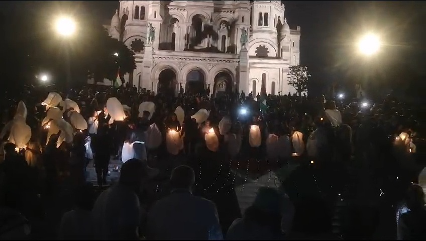 Les Blouses blanches pour Gaza ont organisé mercredi soir une veillée silencieuse en hommage aux enfant morts à Gaza, sur les marches du Sacré-Coeur à Montmartre