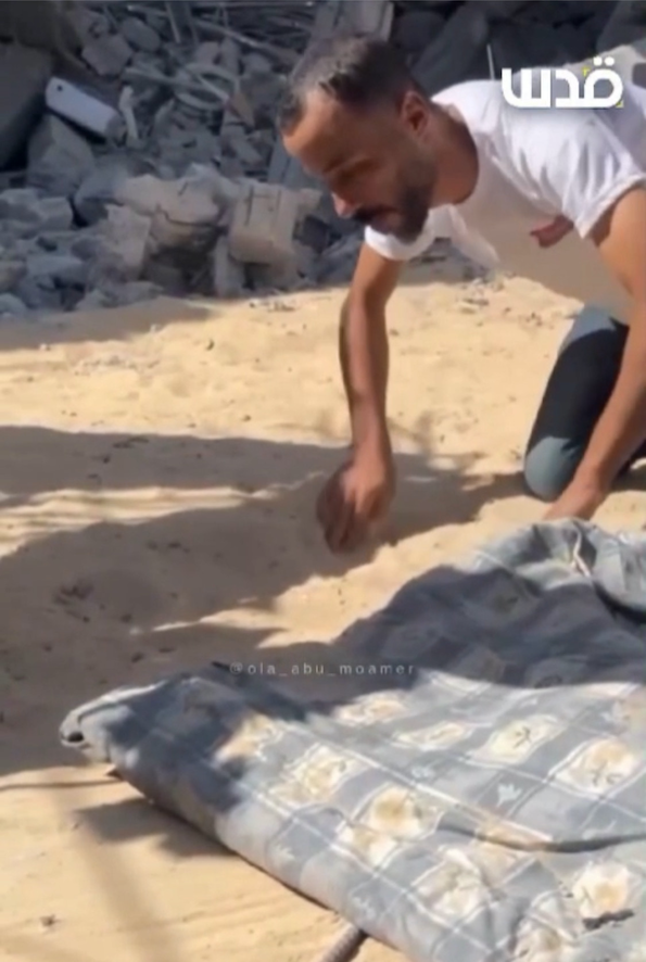 Un Palestinien raconte les moments terrifiants qu’il a endurés alors qu’il était assiégé par les chars d’occupation israéliens dans sa tente à Hamad City, Khan Yunis, où il a été contraint de s’enfouir dans le sable pendant des heures pour survivre.