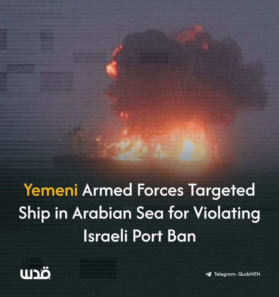 Les forces armées yéménites ont annoncé ce week-end avoir ciblé un navire dans la mer d’Arabie « avec plusieurs drones » pour avoir violé l’interdiction d’entrer dans les ports israéliens.