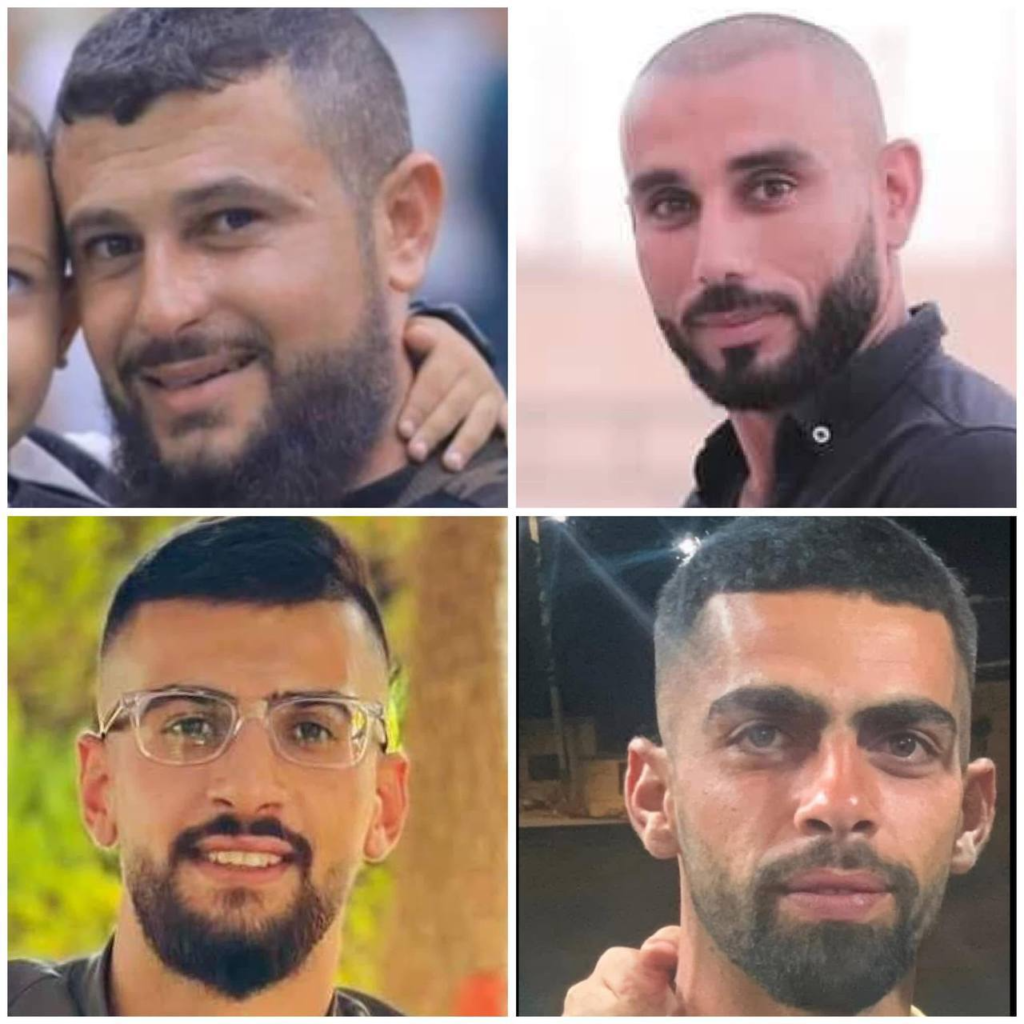 Les corps sans vie de Montaser Naeem, Abdullah Irsheid, Wael Lahlooh et Abdul Salam Al-Rab ont été retrouvés lundi enveloppés dans des sacs, près du poste de contrôle militaire israélien de Dothan, au sud-ouest de Jénine