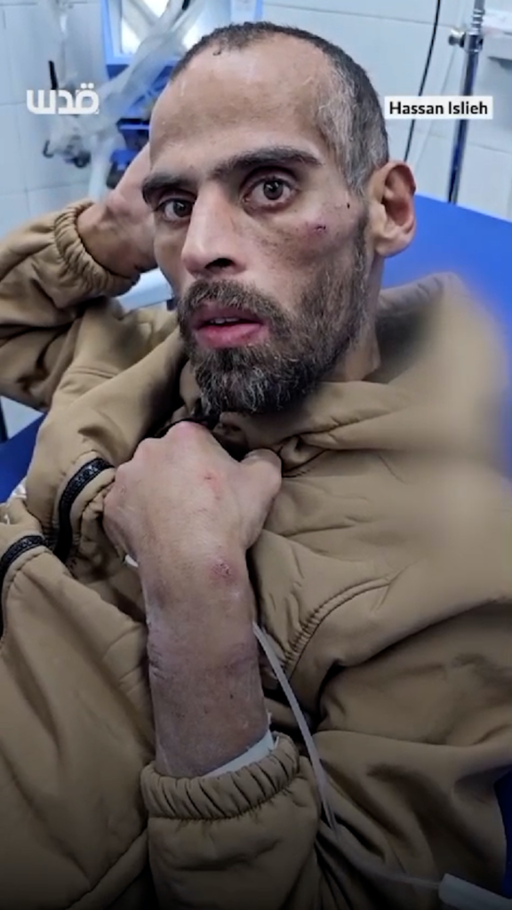 Tous les Palestiniens pris en otage par Israël –vous savez cet Etat qui n’aime pas les « scénographies » de libération des otages israéliens– sont battus, torturés, affamés par les tortionnaires israéliens.