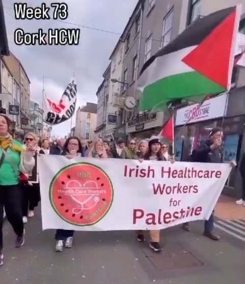 Les professionnels de la santé ont organisé une manifestation à Cork pour exiger la libération du Dr Hussam Abu Safiya et de ses collègues qui ont été enlevés par les forces d’occupation israéliennes pendant le génocide à Gaza.