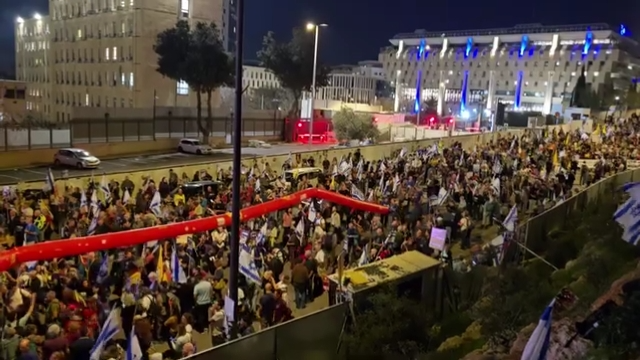 Manifestation devant le siège du gouvernement israélien à Jérusalem, les manifestants appelant à la fin de la « guerre contre Gaza » et à la conclusion d’un accord d’échange de prisonniers.