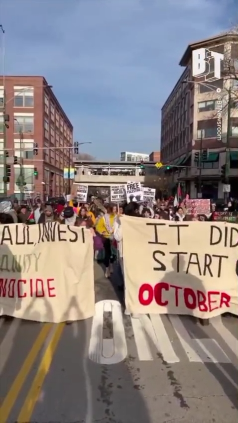 Les étudiants de l’Université De Paul ont manifesté sur le campus, dénonçant la complicité de l’université dans le génocide israélien en cours à Gaza et exigeant la fin de ses déportations massives de militants pro-palestiniens.