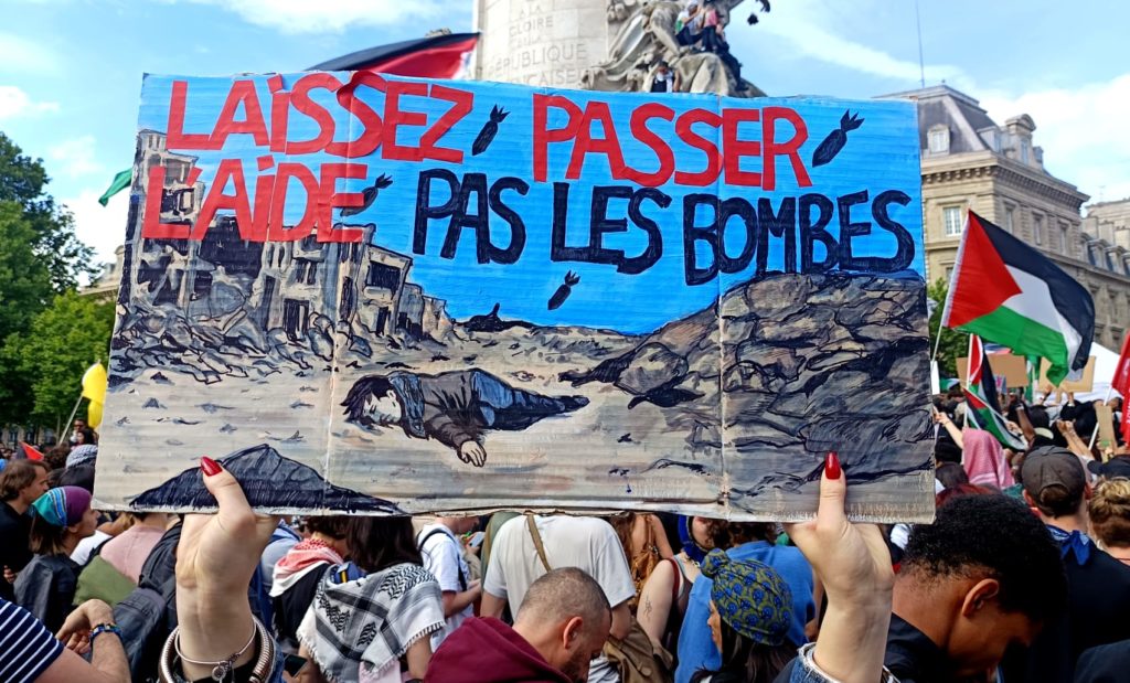 Des milliers de manifestants étaient rassemblés dimanche après-midi Place de la République à Paris, pour dire Stop Génocide et dénoncer les menaces de dissolution d’Urgence Palestine.