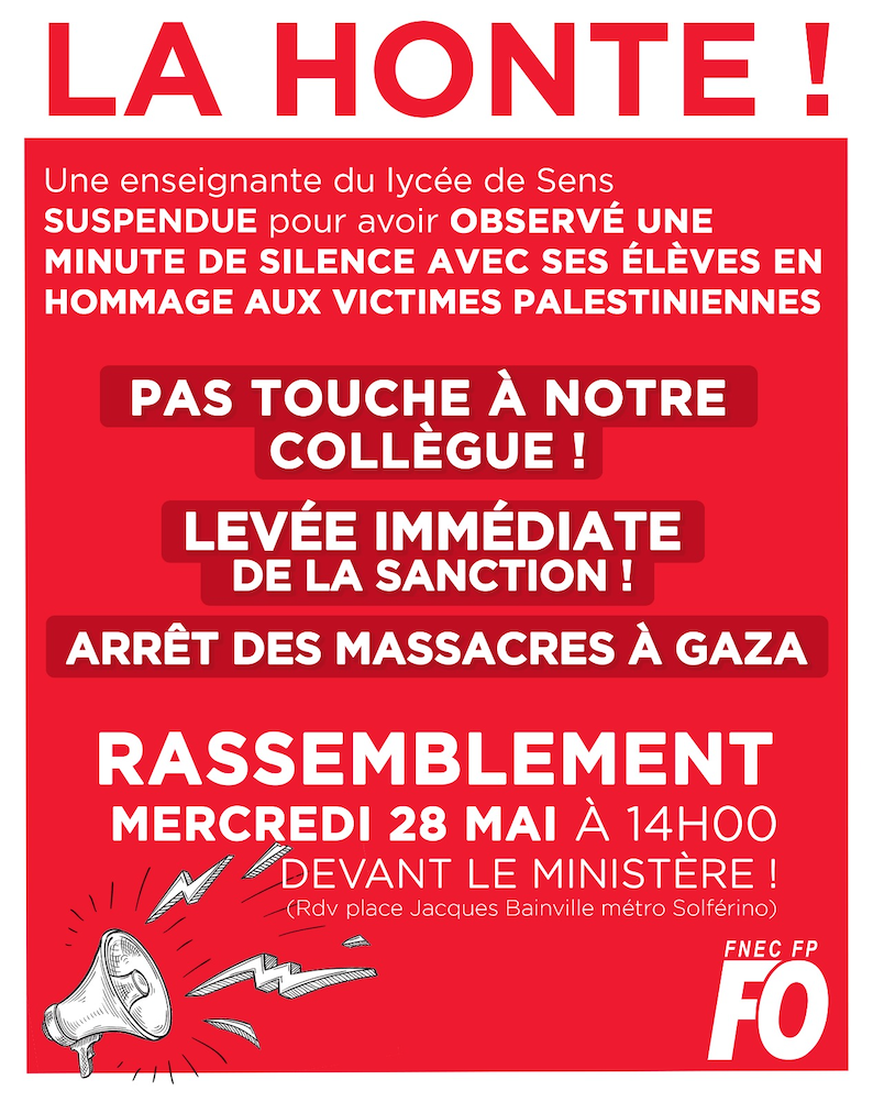 Autre appel à rassemblement à Paris, ce mercredi à 14 H devant le ministère de l’enseignement :