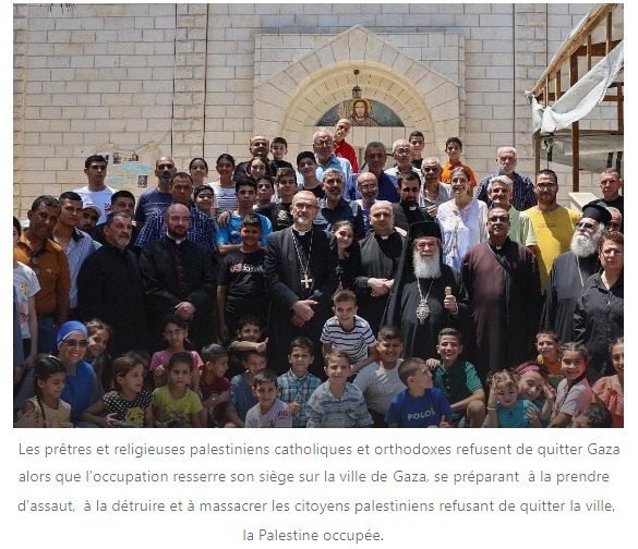 Les prêtres et religieuses palestiniens catholiques et orthodoxes refusent de quitter Gaza alors que l’occupation resserre son siège sur la ville de Gaza, se préparant à la prendre d’assaut, à la détruire et à massacrer les citoyens palestiniens refusant de quitter la ville, la Palestine occupée.