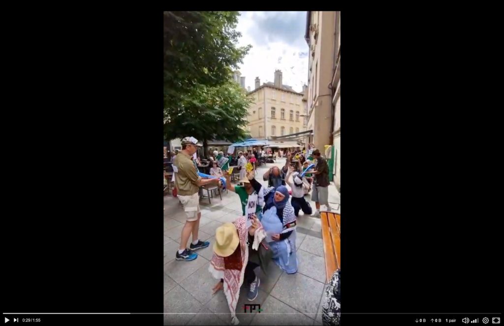Les habitants de Rodez, dans l’Aveyron, ont bénéficié d’une scène de théâtre de rue édifiante, qui montre, en mode pourtant bien soft par rapport à la réalité, les souffrances endurées quotidiennement par la population palestinienne de Cisjordanie, aux mains de l’occupant israélien.