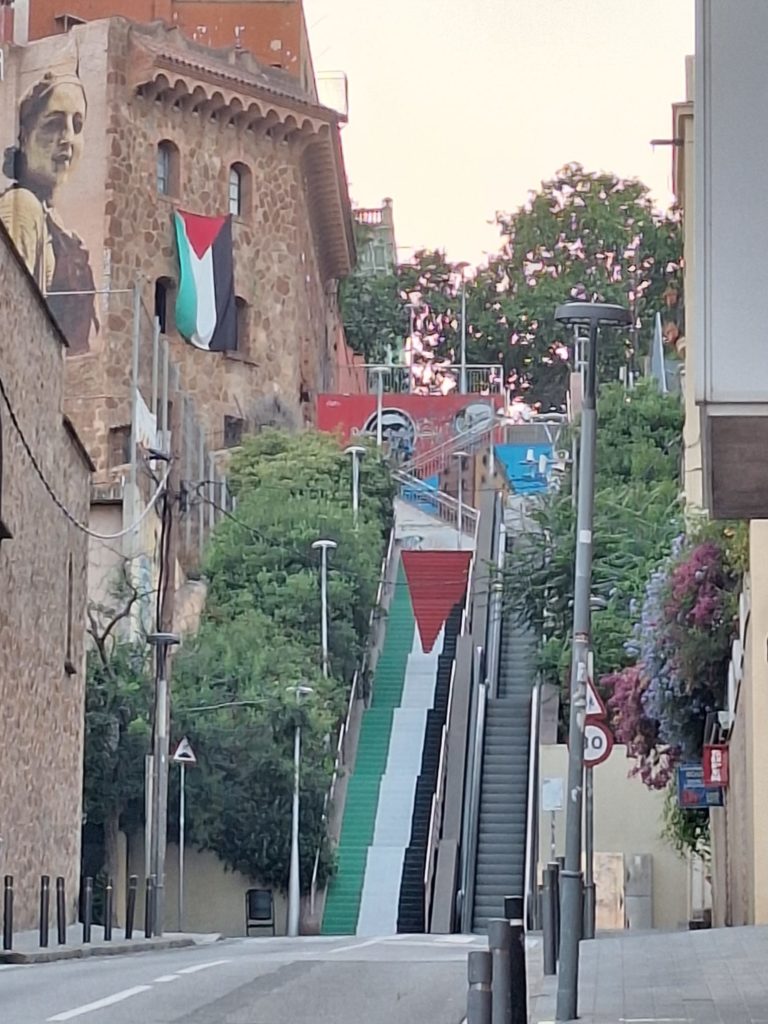 Dans le quartier de Gracia, le célèbre Guernica de Picasso revisité ux couleurs de la Palestine