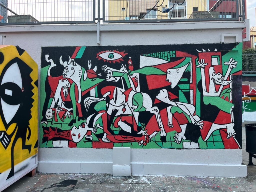 Dans le quartier de Gracia, le célèbre Guernica de Picasso revisité ux couleurs de la Palestine