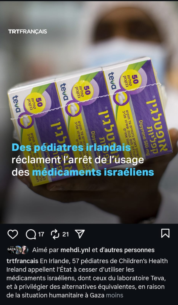 D’autant que TEVA n’est pas neutre. La firme israélienne profite largement de l’occupation !