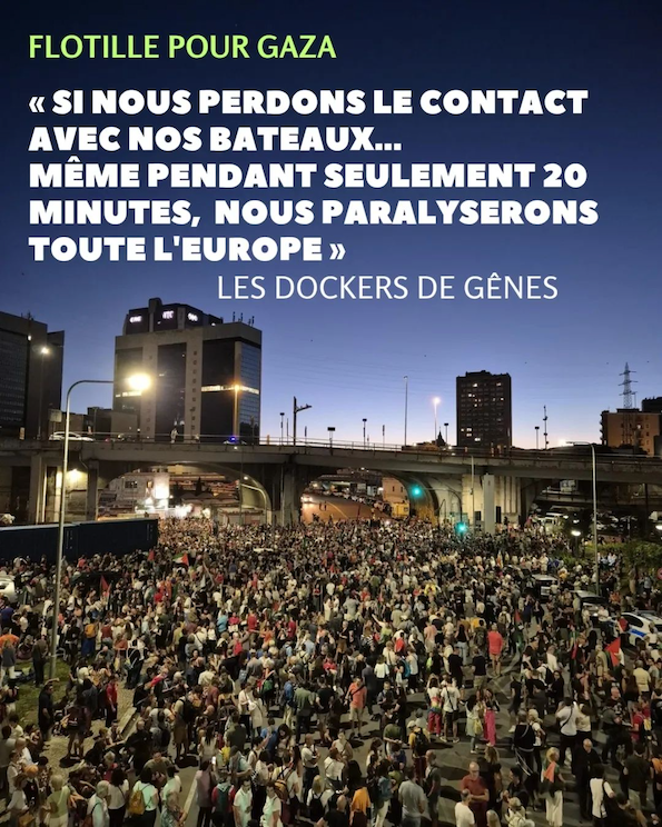 « On ne laissera pas un seul clou s’échapper. On va lancer une grève internationale, on va bloquer les rues. On va tout bloquer. Nos filles et nos garçons doivent rentrer sans une égratignure, et tous nos biens, qui appartiennent au peuple, même la dernière boîte, doivent atteindre où ils devraient aller […] », ont menacé les dockers de Gênes avant le départ des bateaux.