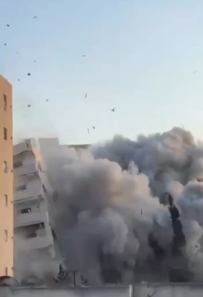 Israël a détruit une troisième tour à Gaza en 3 jours. L’aviation des génocidaires a complètement détruit la tour résidentielle Al-Rou’ya, à Tel al-Hawa, au sud-ouest de Gaza.