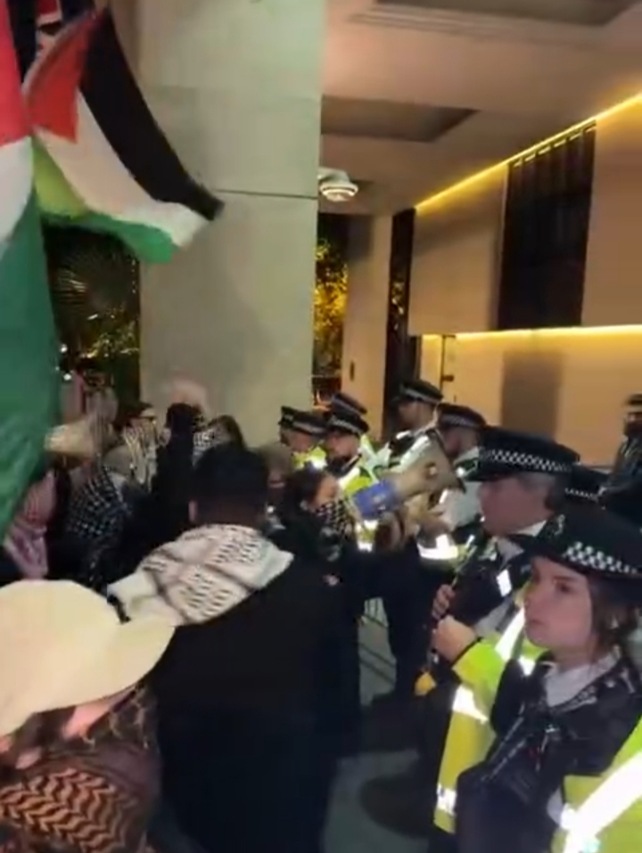 Des militants manifestaient mardi soir devant l’hôtel où séjourne le président israélien Isaac Herzog à Londres, exigeant son arrestation pour son rôle dans les crimes de guerre en cours contre le peuple palestinien.