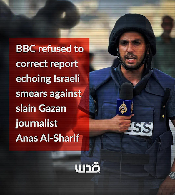 C’est pourquoi la BBC se déconsidère un peu plus en reprenant les accusations israéliennes contre le journaliste palestinien d’Al Jazeera Anas Al-Sharif, qualifié de membre du Hamas pour justifier son assassinat.