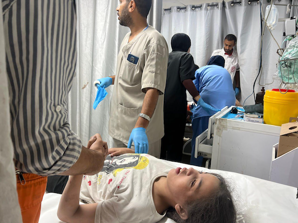 L’hôpital pédiatrique spécialisé Al-Rantisi de Gaza a été frappé trois fois de suite, laissant 80 patients bloqués dans ses services, dont quatre en soins intensifs pédiatriques et huit nouveau-nés en néonatalogie.