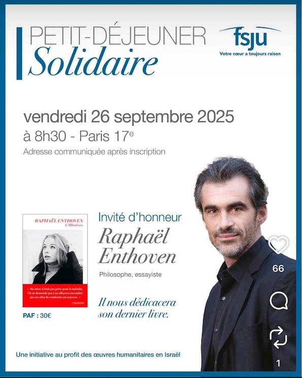 Allez, soyez sympa, le pro-génocide israélien retente sa chance, devant un public acquis ce vendredi, si vous avez envie d’aller vomir un petit-déjeûner avec lui !