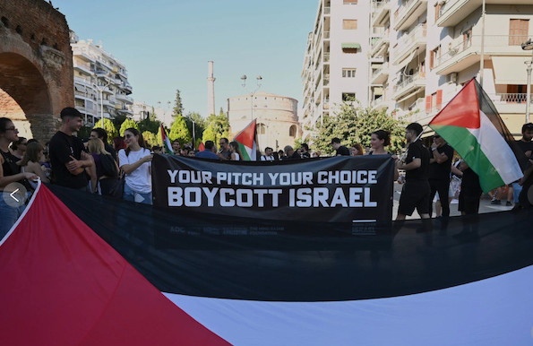 Des manifestations ont éclaté à Thessalonique, en Grèce, pour exiger l’expulsion des équipes israéliennes des compétitions sportives européennes en raison des massacres en cours à Gaza.