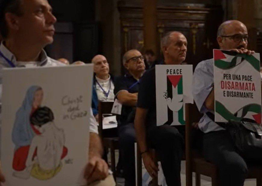 Un groupe de prêtres a participé à une manifestation à Rome en solidarité avec les Palestiniens de Gaza ce week-end.