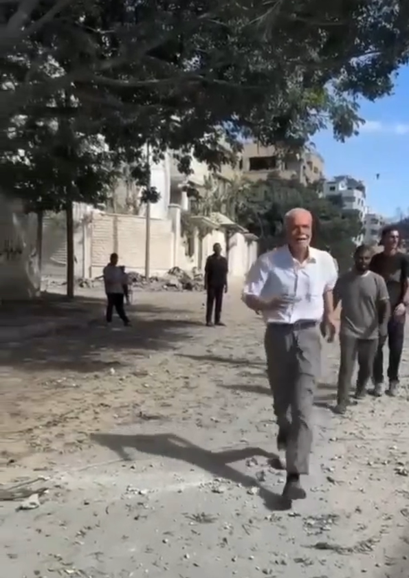Un vieil homme palestinien sous le choc après qu’un bombardement israélien a détruit un bloc résidentiel dans le camp de réfugiés d’Al-Shati, à l’ouest de la ville de Gaza, tuant la plupart des membres de sa famille, leurs corps étant toujours coincés sous les décombres.