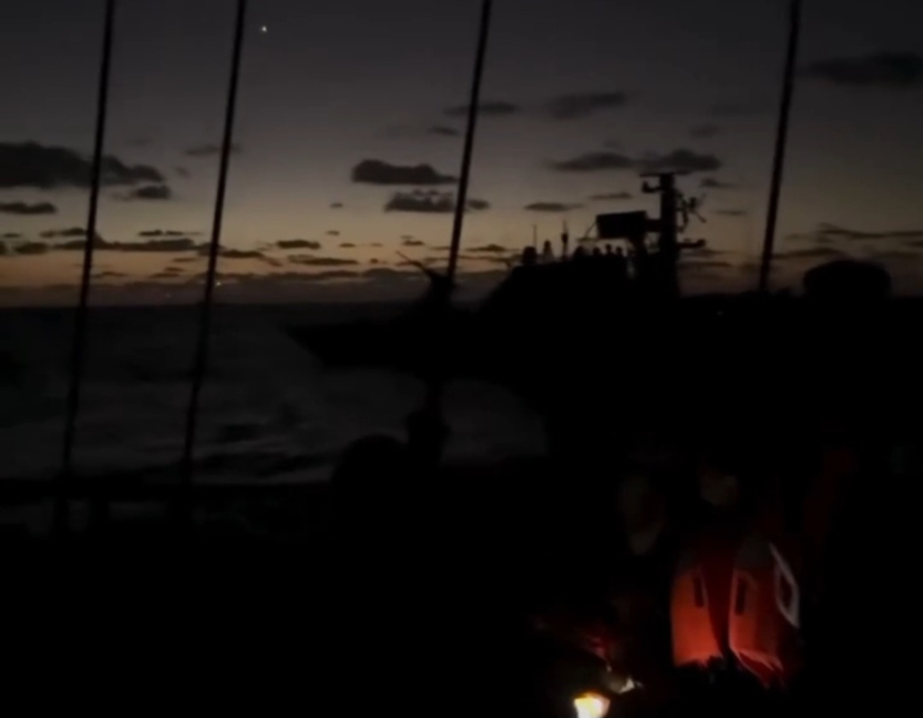 À l’aube mardi, un navire militaire israélien s’est approché près des bateaux Alma et Sirius, intimidant, endommageant leurs systèmes de communication et effectuant des manœuvres très dangereuses autour des bateaux.