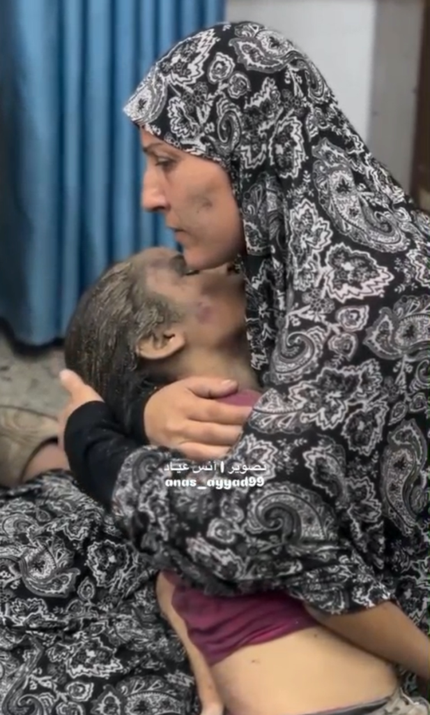 Une mère palestinienne au cœur brisé embrasse sa fille avec chagrin, après qu’elle ait été tuée par un bombardement israélien qui a ciblé leur maison dans le camp de réfugiés d’Al-Shati, à l’ouest de Gaza.