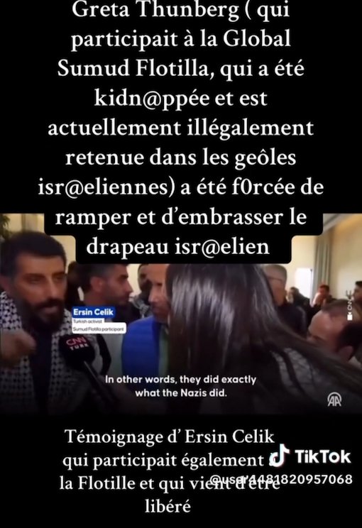 Greta Thunberg torturée par Israël ! Appel à manifester ce dimanche