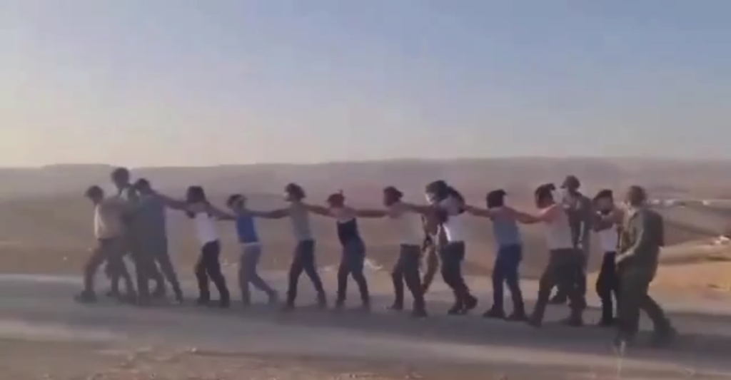 Une vidéo documente la détention et le harcèlement de 19 Palestiniens, dont des enfants par les forces d’occupation israéliennes après une attaque perpétrée hier par des colons israéliens, dans le village d’Al-Zweidin à Masafer Yatta, au sud d’Hébron, en Cisjordanie occupée.