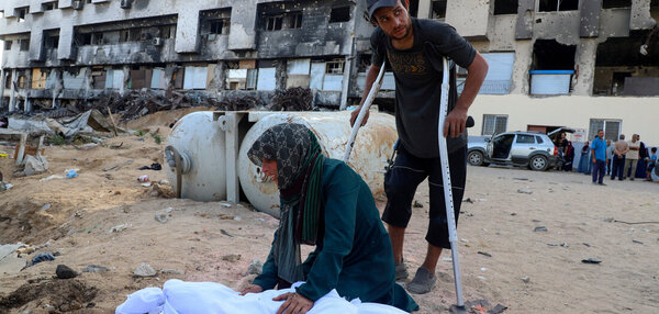 A Khan Younès, pourtant au sud de la bande de Gaza, les bombardement israéliens ont fait de nombreuses victimes pleurent leurs proches tués lors des attaques israéliennes à travers la bande.