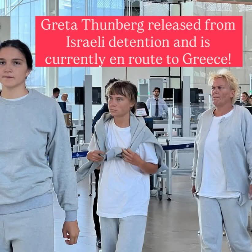 Ils ont atterri à Athènes ce lundi à 17 H. La pression générale a fait qu’Israël a été obligé de tous les relâcher, même les »récidivistes » comme Greta Thunberg et Rima Hassan !