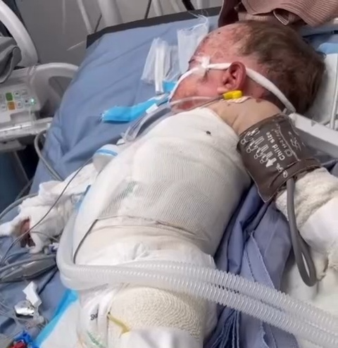 Un bébé de moins de 10 mois repose dans un lit d’hôpital après avoir perdu toute sa famille, y compris ses parents et tous ses frères et sœurs, lors d’une terrible attaque israélienne dans le sud de Gaza.