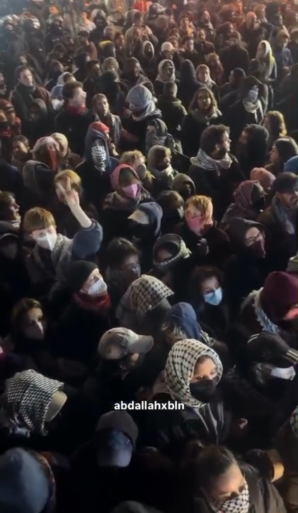 Regardez comment la police allemande, si brutale avec les manifestants contre le génocide, entoure et protège une contre-manifestante avec son drapeau israélien !
